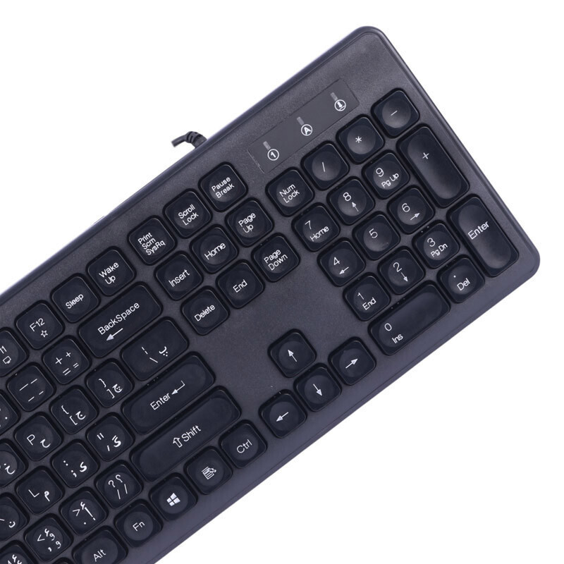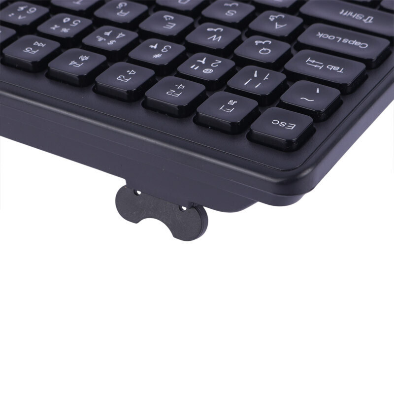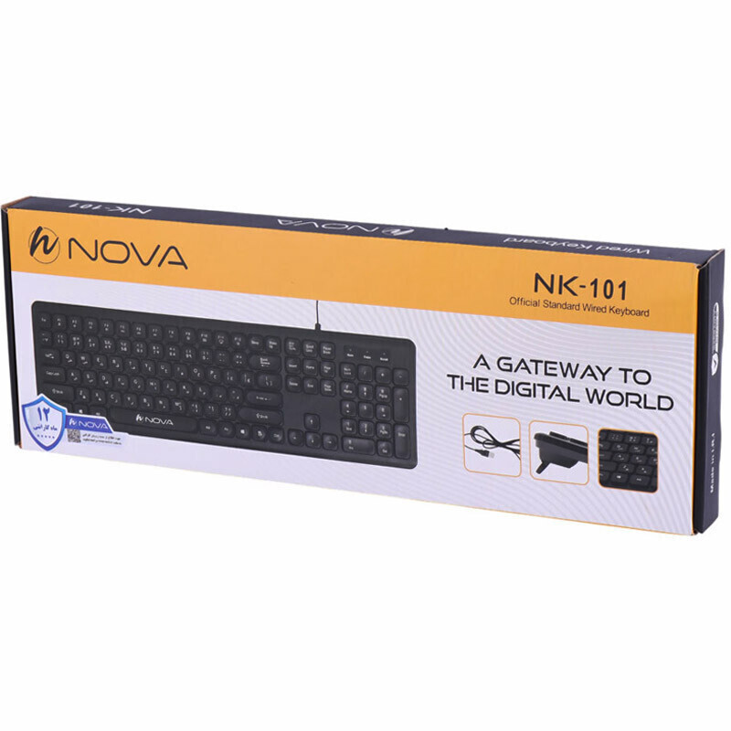 مجهز به پایه جهت تنظیم ارتفاع برای استفاده بلند مدت، پشتیبانی از اتصال Plug And Play جنس بدنه ساخته شده از پلاستیک باکیفیت، مقاوم در برابر آسیب های احتمالی همچون فشار و ضربه طراحی شده به صورت ارگونومیک، دارای 108 کلید فیزیکی با حروف حک شده فارسی، دارای نشانگر LED پشتیبانی از تمام نسخه های ویندوز، مک و لینوکس، موفق به کسب استاندارد سلامت و ایمنی محصول CE و FCC اتصال از طریق سیم با رابط USB به طول 150 سانتی متر، روکش کابل از جنس پلاستیک مقاوم در برابر کشش و خمیدگی