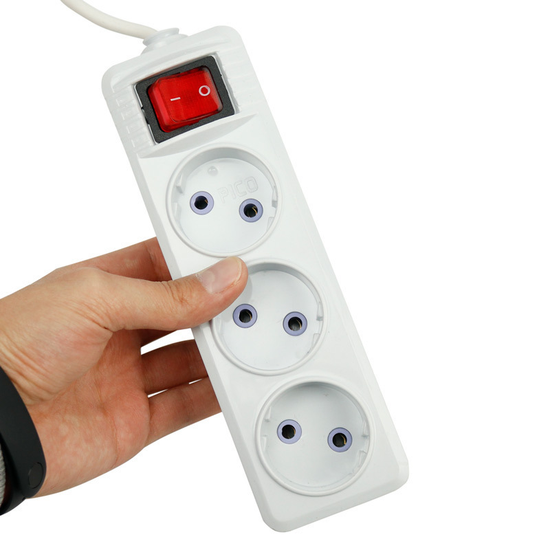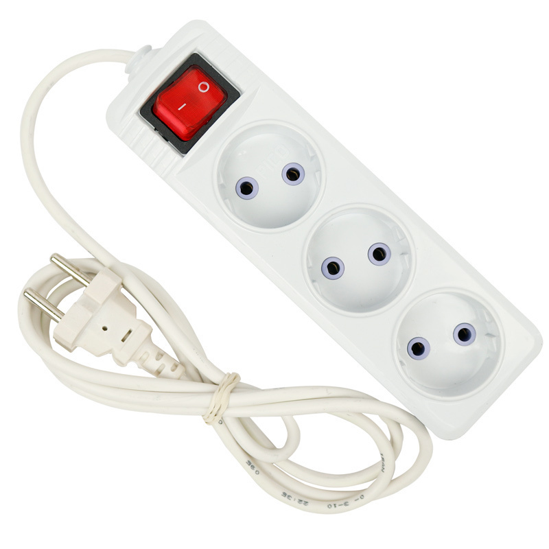 دارای ۳ عدد ورودی پریز بدون ارت برای اتصال دستگاه ها و وسایل الکترونیکی و کابل با طول ۳۰۰ سانتی متر و روکش TPE کلید روشن و خاموش برای قطع و وصل جریان برق در هنگام عدم نیاز میزان ولتاژ ورودی حداکثر ۲۵۰ ولت، جریان کاری ۱۰ آمپر