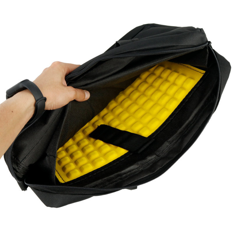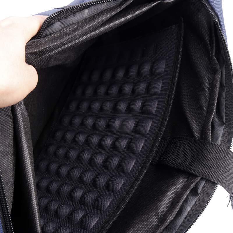 نحوه باز و بسته شدن کیف از طریق زیپ، مجهز به جداکننده و ضربه گیر حبابی همراه با یک بند دوشی و امکان تنظیم ارتفاع، قابلیت حمل دستی کیف دارای فضای کافی جهت حمل و نگهداری لوازم جانبی لپ تاپ مناسب قرارگیری لپ تاپ تا سایز ۱۵٫۶ اینچ