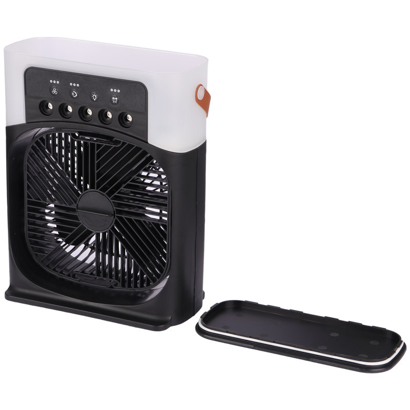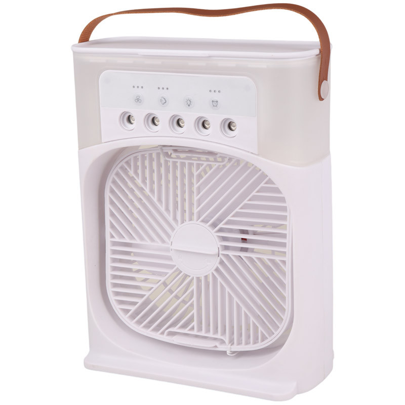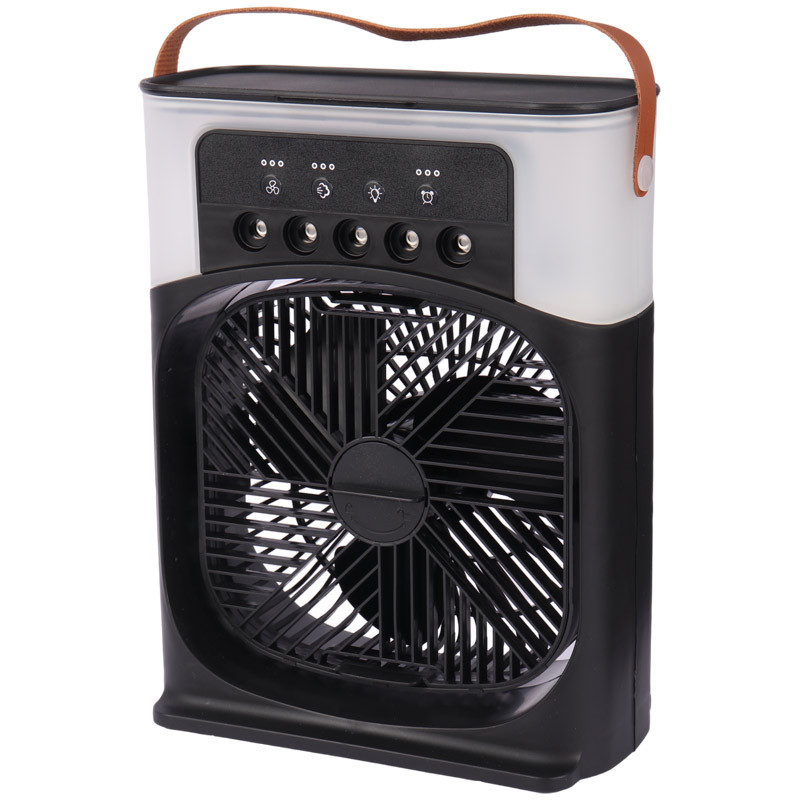 تامین انرژی از طریق درگاه Type-C تعبیه شده بر روی بدنه و کابل همراه مجهز به تایمر در سه زمان 1 ساعته، 2 ساعته و 3 ساعته جهت خاموش شدن بدنه ای ساخته شده از پلاستیک باکیفیت، مقاوم در برابر ضربه و فشار احتمالی دارای شدت جریان کاری 2 آمپر در ولتاژ خروجی 5 ولت، با توان خروجی کلی 10 وات مجهز به 3 حالت تغییر سرعت گردش فن و اسپری، حداکثر فاصله دمیدن در حدود 25 متر دارای دسته جهت حمل آسان، موفق به کسب استاندارد سلامت محصول شامل CE/ FCC/ RoHS مجهز به کلید فیزیکی جهت خاموش و روشن کردن فن، بهره مندی از چراغ LED جهت ایجاد جلوه بصری زیبا دارای مخزن آب با ظرفیت 600 میلی لیتر با قابلیت مه پاشی، مدت زمان اسپری کردن آب در حدود 2.5 الی 12 ساعت