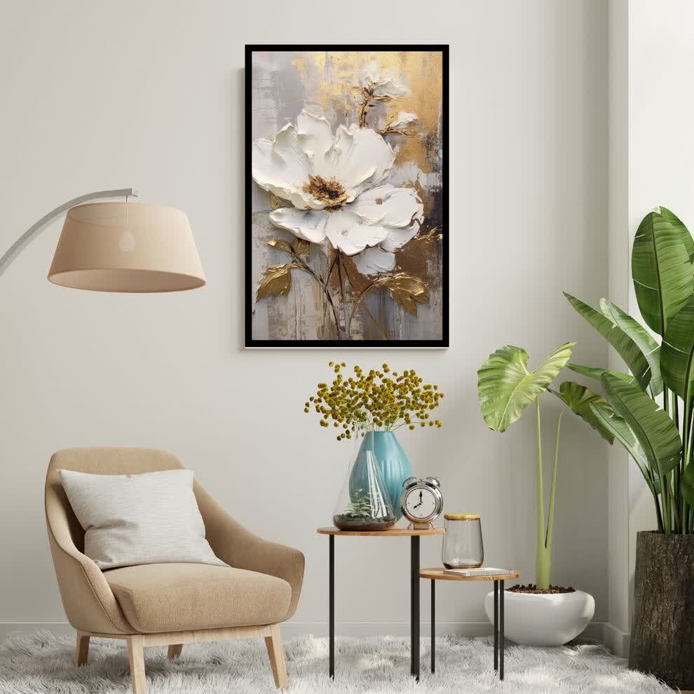 تابلو نقاشی دکوراتیو کار دست رنگ روغن طرح گل سفید 50x70