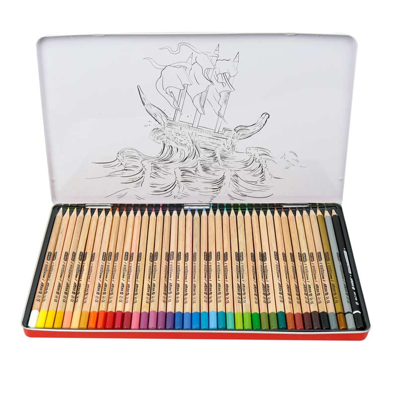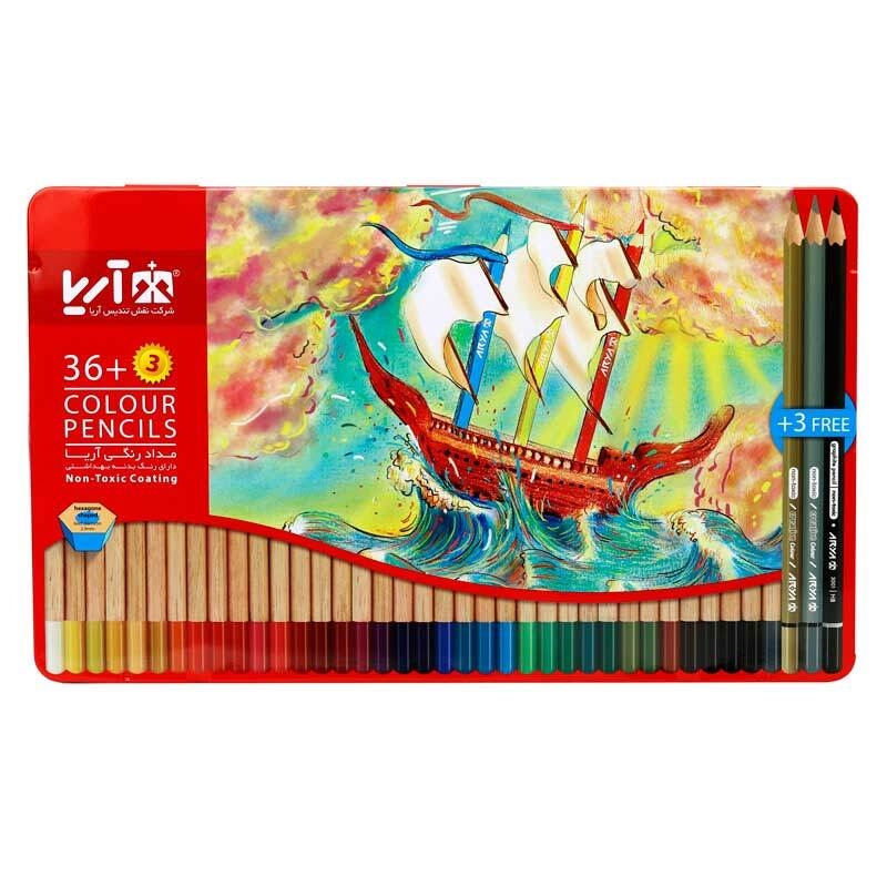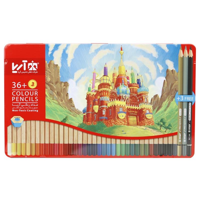 سه مداد اضافی شامل یک مداد رنگی نقره ای، یک مداد مشکی تحریر و یک مداد رنگی طلایی بدنه ی مقاوم از جنس چوب با کیفیت و رنگ بهداشتی، با سطح مقطع شش ضلعی قطر مغزی ۲٫۹ میلی متر، امکان تراشیدن آسان و رنگ های شارپ و درخشان غیر سمی، مناسب نقاشی کودکان، بزرگسالان، کاربران مبتدی و حرفه ای تعداد ۳۹ رنگ ( ۳۶+۳ ) در جعبه ای فلزی با طرح های زیبا و متنوع نوک مداد نرم، پر رنگ و روان با مقاومت بالا در برابر شکستگی دارای استانداردهای CE و ISO 10002:2014