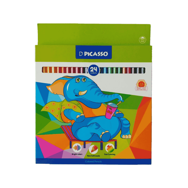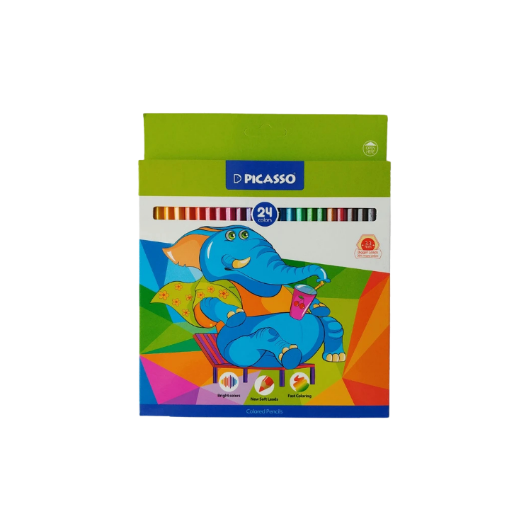 مداد رنگی 24 رنگ جعبه مقوایی پیکاسو (طرح جدید) را می توان یکی از با کیفیت ترین مداد رنگی ها نسبت به رقبا دانست. چرا که هم از کیفیت چوب بالایی برخوردار است و هم گرافیت استفاده شده در مغز مداد، در 24 رنگ مختلف بسیار مرغوب است. نرم بودن مغزی مداد رنگی، تراشیده شدن به راحتی و شکسته نشدن در حین فرآیند تراشیده شدن و همچنین رنگ های جذاب و درخشان، از ویژگی های مداد رنگی های پیکاسو می باشد. طیف رنگی هر جعبه از این مداد رنگی، گستردگی بالایی (در رنگ های گرم و سرد) دارد و برای نقاشان نیمه حرفه ای و افرادی که به نقاشی، به عنوان یک حرفه هنری نگاه دارند، گزینه ی بسیار مناسبی است.