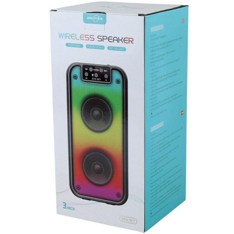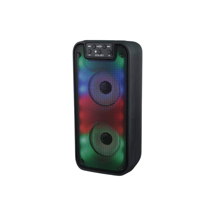 بدنه ساخته شده از جنس پلاستیک باکیفیت، مقاوم در برابر اسیب های احتمالی پشتیبانی از فلش مموری و کارت حافظه جهت پخش فایل های ذخیره شده تا 32 گیگابایت مدت زمان مورد نیاز جهت شارژ شدن حدود 2 الی 3 ساعت و شارژدهی تقریبی 1 الی 2 ساعت تامین انرژی از طریق باتری داخلی با ظرفیت 1200 میلی آمپر با امکان شارژ مجدد توسط درگاه تایپ سی برخوردار از دو اسپیکر 3 اینچی، دارای کلید های فیزیکی تعبیه شده روی بدنه اسپیکر به منظور مدیریت پخش و ولوم دارای نورپردازی RGB جهت جلوه بصری زیبا در نور کم، امکان دریافت امواج 87.5 الی 108 مگاهرتزی رادیو FM