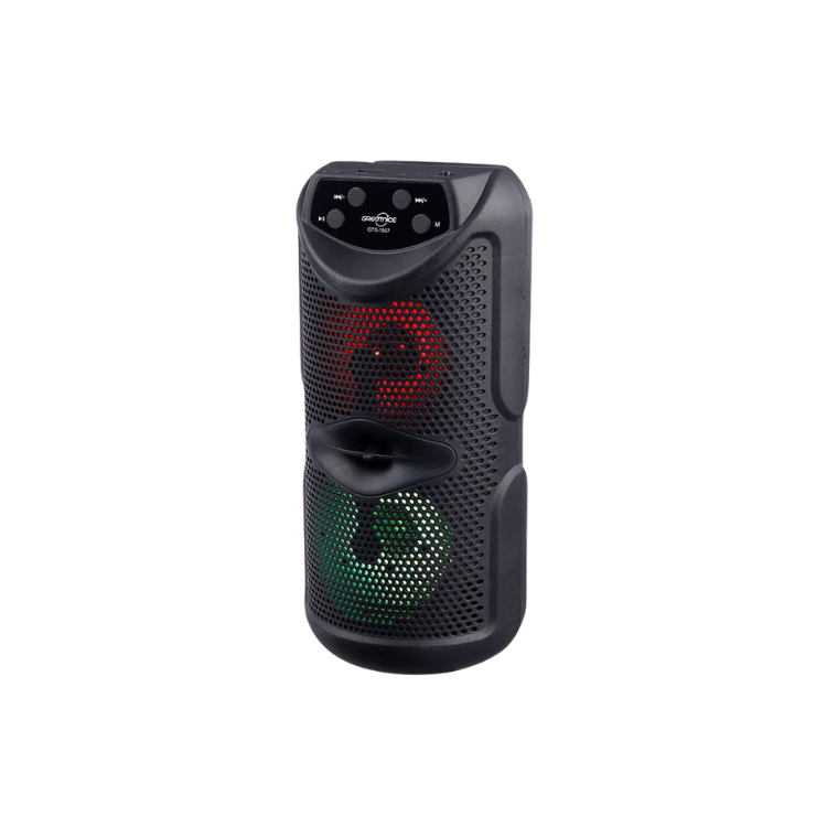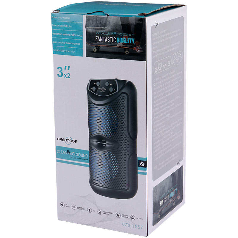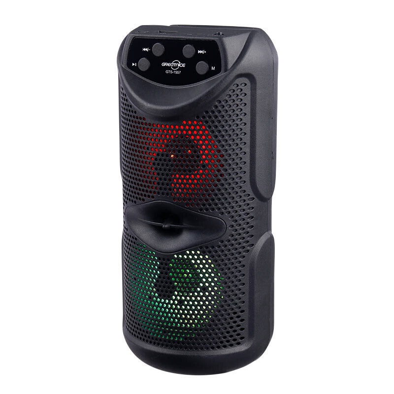 نحوه اتصال به صورت بی سیم از طریق بلوتوث با برد تقریبی 10 متر مجهز به نورپردازی RGB جهت ایجاد جلوه بصری زیبا، وجود نشانگر LED جهت اطلاع از شارژ برخورداری از دو عدد درایو 3 اینچی، امکان دریافت امواج FM برای دوستداران برنامه های رادیویی بدنه ساخته شده از جنس پلاستیک مقاوم در برابر آسیب های فیزیکی، دارای دسته جهت حمل آسان برخورداری از کلید های فیزیکی تعبیه شده بر روی بدنه به منظور مدیریت موسیقی، ولوم، Mode و ... تامین انرژی توسط باتری داخلی با امکان شارژ مجدد از طریق درگاه Micro USB و کابل همراه با ولتاژ شارژ 5 ولت DC پشتیبانی از فلش مموری USB و کارت حافظه Micro SD تا حداکثر حجم 32 گیگابایت به منظور پخش فایل های ذخیره شده