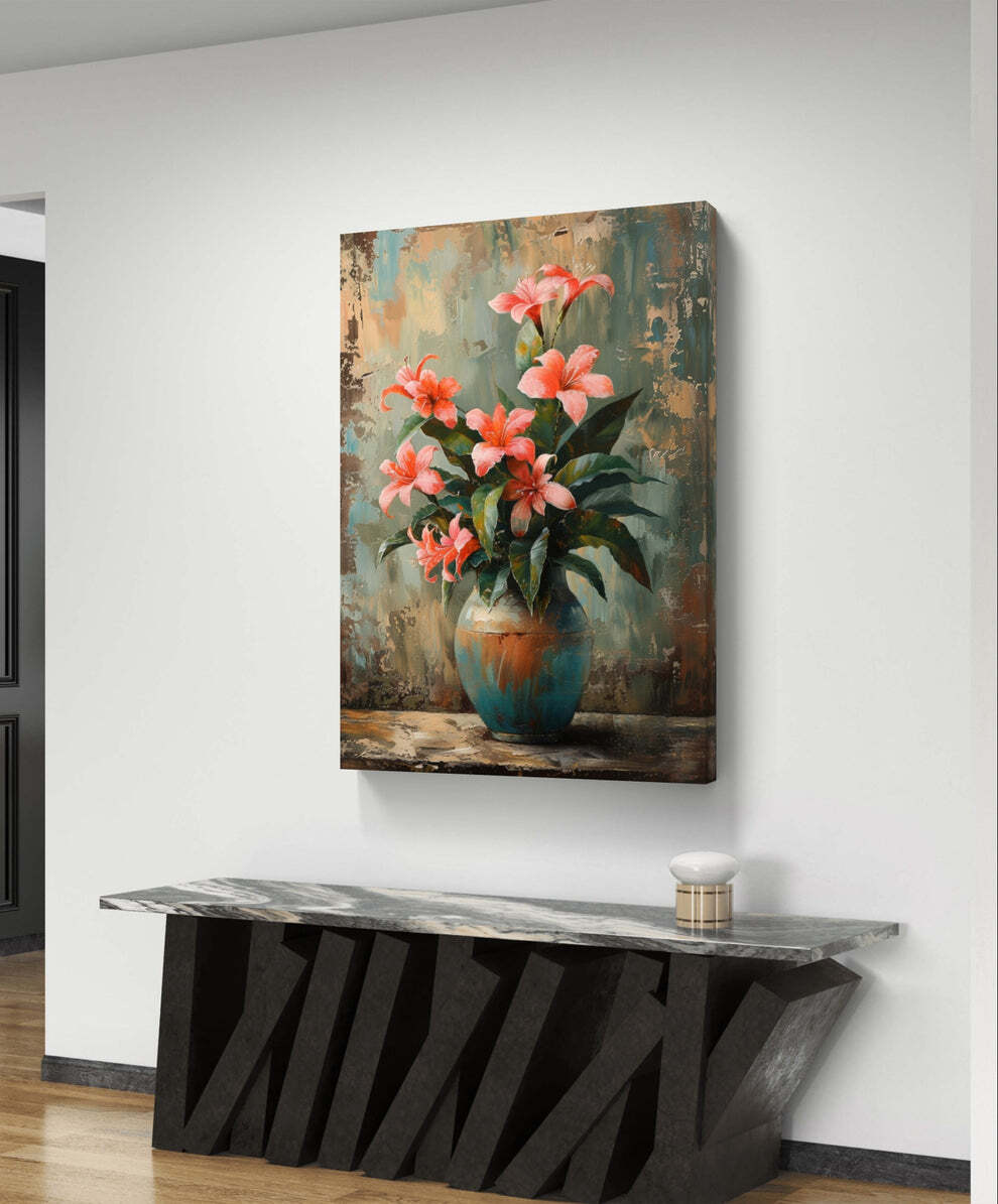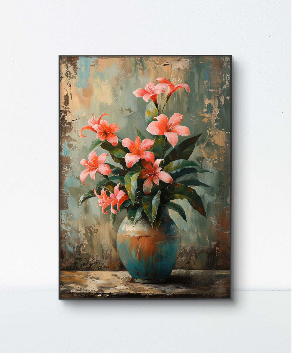 تابلو نقاشی دکوراتیو کار دست رنگ روغن طرح دسته گل رژگونه 50x70