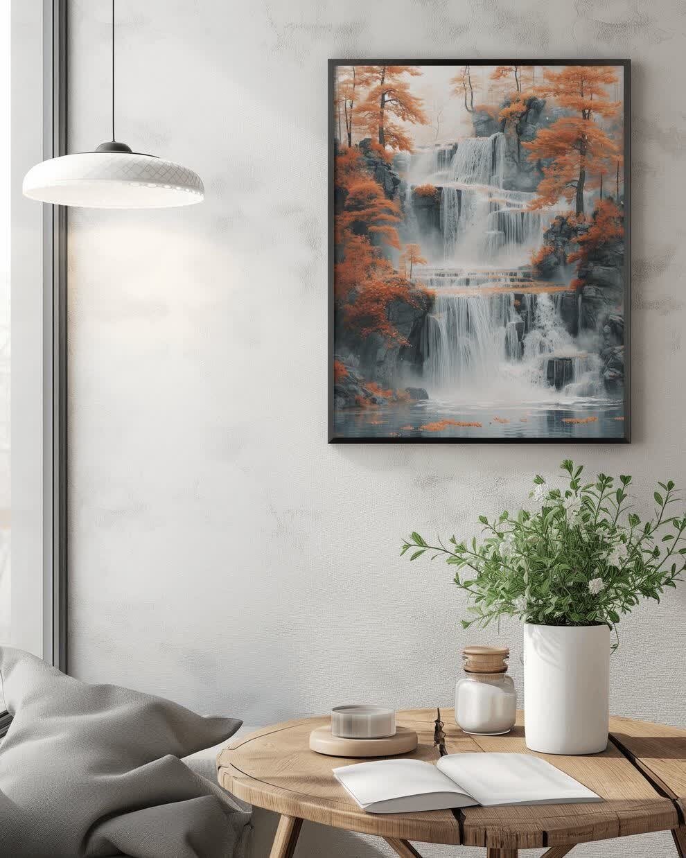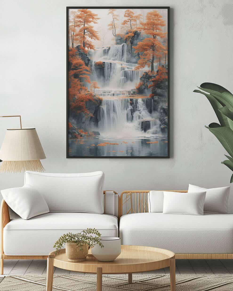 تابلو نقاشی دکوراتیو کار دست رنگ روغن طرح آبشار با شکوه 50x70