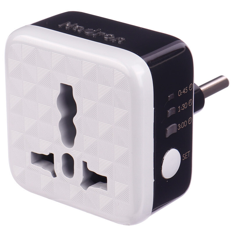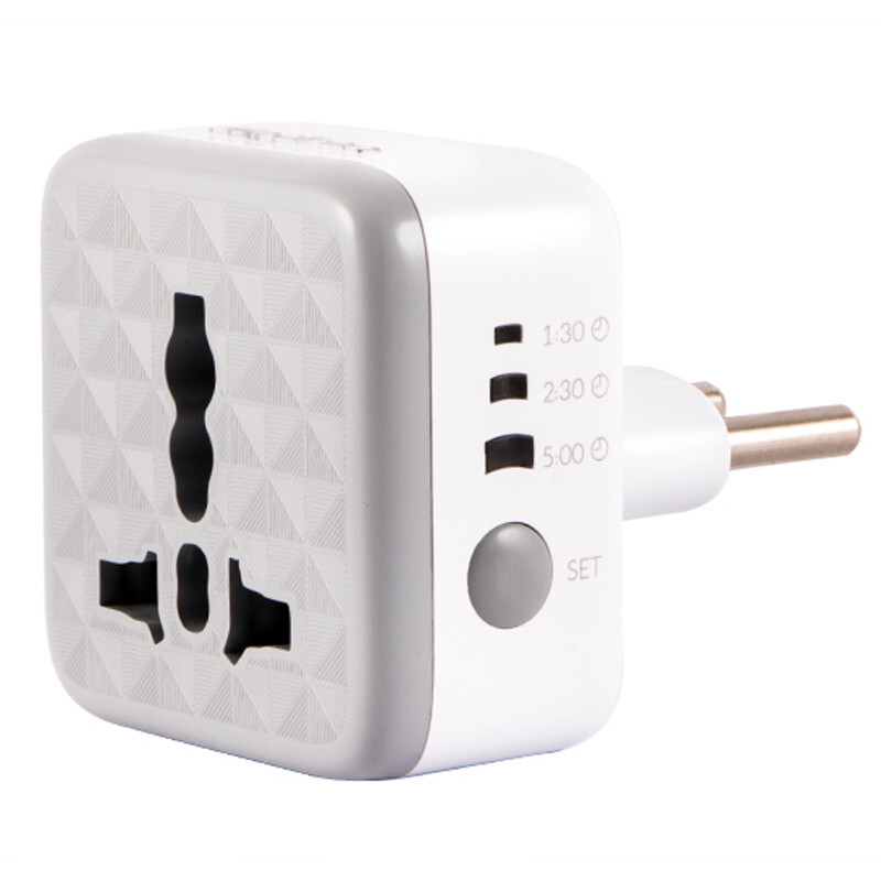 نوعی تبدیل 3 به 2 اما با قابلیت های جالب می باشد که در ادامه به آنها می پردازیم. شرکت سازنده از پلاستیک ABS و پلی کربنات در ساخت محافظ برق هوشمند تایمردار استفاده کرده است، از این رو بدنه آن در مقابل آسیب هایی نظیر فشار، ضربه و دما بیش از حد مقاوم می باشد. طراحی ظاهری تبدیل نیز مینیمال بوده و با داشتن رنگ بندی متنوع سازگاری بیشتری با سلیقه کاربرانی خواهد داشت که پیرو هماهنگ کردن رنگ محصولات و تجهیزات جانبی با استایل و چیدمان خانه، محل کار و… هستند. تایمر 3 زمانه این تبدیل 3 به 2 دارای تایمر بوده و از همین جهت آن را هوشمند می نامند؛ در واقع شما می توانید به کمک کلید فیزیکی Set که در قسمت کناری بدنه آن تعبیه شده تبدیل را به گونه ای تنظیم کنید که پس از 45 دقیقه، 1.5 ساعت یا 3 ساعت خاموش شود. چنین ویژگی مخصوصا هنگام شارژ کردن گوشی موبایل، تبلت، لپ تاپ و… بسیار کاربردی خواهد بود چرا که می توانید از آسیب دیدن باتری این دستگاه ها بر اثر شارژ شدن بیش از حد جلوگیری کنید. البته اگر به تایمر نیازی نداشتید می توانید با 2 ثانیه نگه داشتن کلید Set تنظیمات تایمر را غیر فعال کنید. محافظ برق هوشمند تایمردار از فناوری شارژ سریع پشتیبانی می کند بنابراین اگر شارژر شما نیز دارای این تکنولوژی است می توانید با خیال آسوده آن را به مبدل متصل کنید