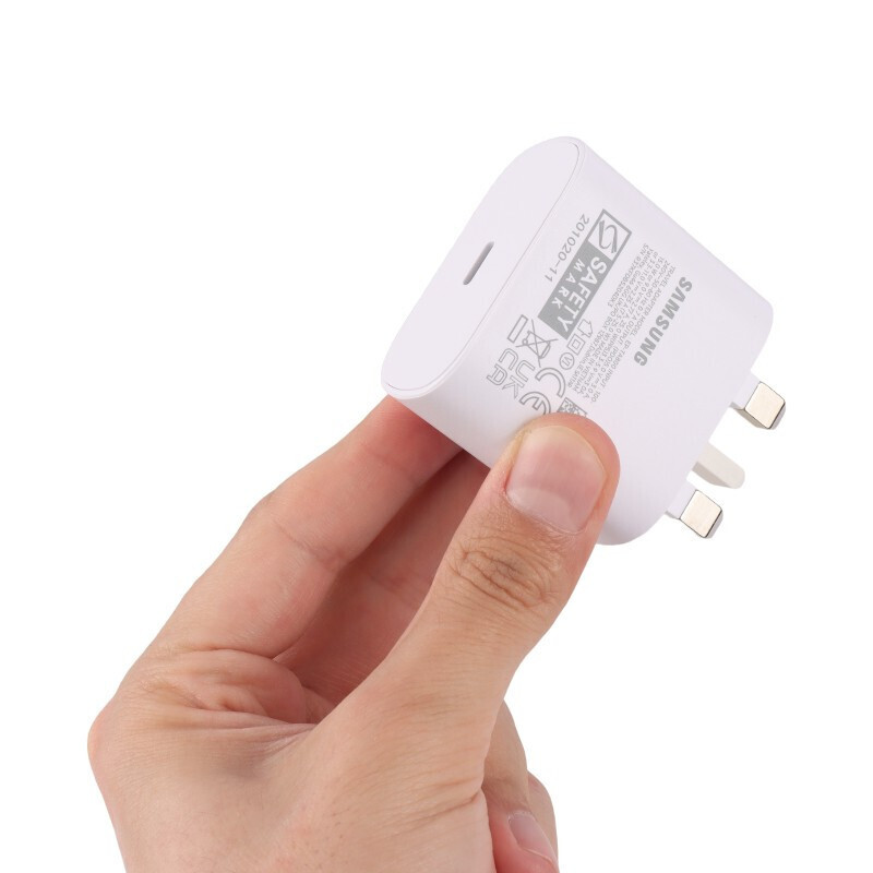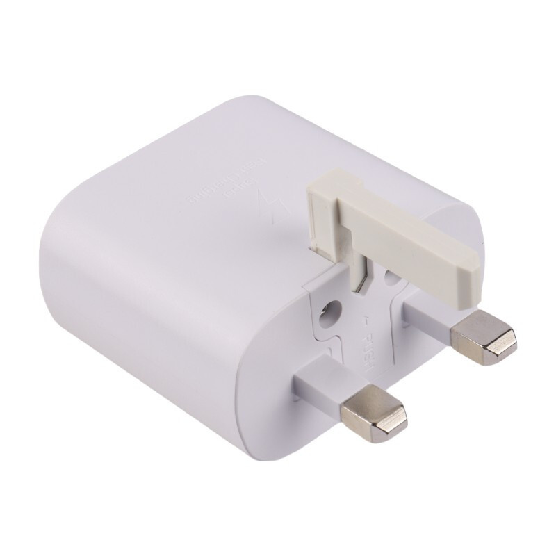 شارژر سامسونگ 25 وات دارای 3 پین است و برای اتصال آن به برق شهری باید حتما از یک تبدیل استفاده کنید. در یک سمت اداپتور سامسونگ ۲۵ وات اصلی نیز درگاهی از نوع تایپ سی قرار گرفته و بنابراین برای استفاده از آن نیاز به یک کابل با کانکتور تایپ سی خواهید داشت.